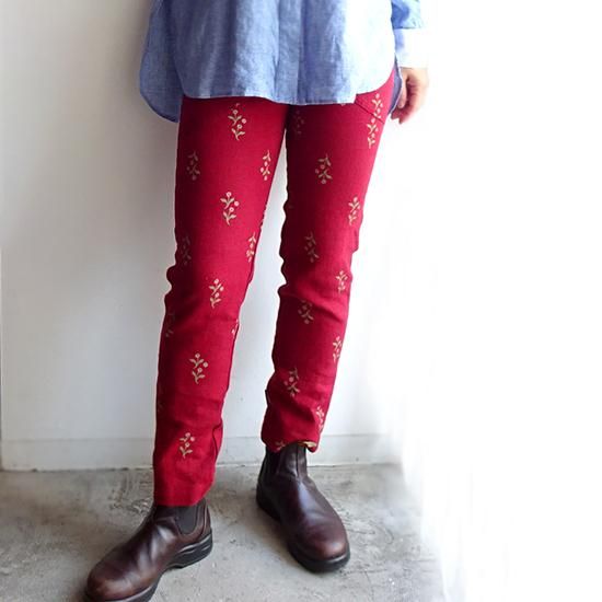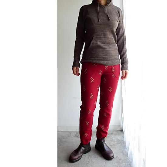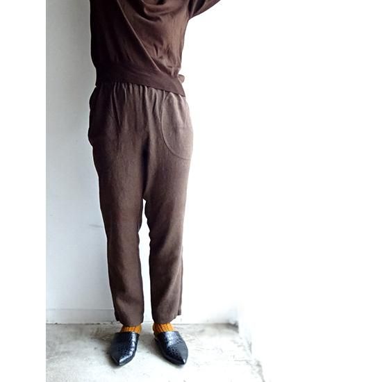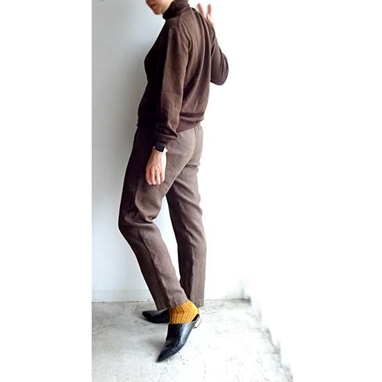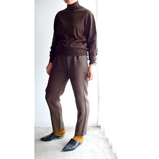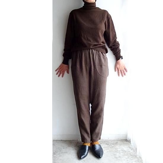 ウエストゴムなのも楽に履けるポイント。試着をされるお客様が、何か下に合わせるものありますか?と尋ねられたら一番に持って行くのがこのパンツです。笑
