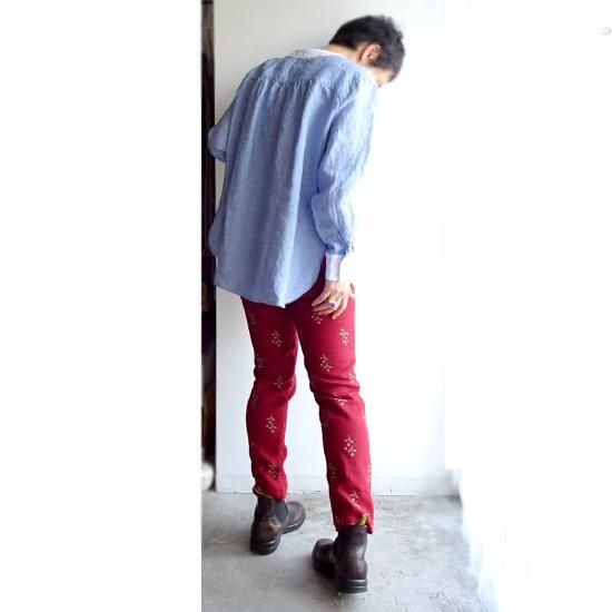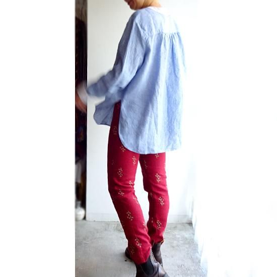 ※麻は縮む特製のある素材です。すでに洗いをかけているのではじめから柔らかく縮みは少ないですが、洗濯を重ねるうちに少し縮むことがあります。また、独特のシワが発生します。多少、アイロンで伸ばすことも可能ですが、味として楽しんでいただけたらと思います。